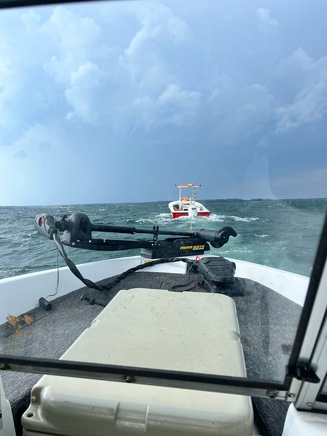 The boat in question is a 1997 Pro Craft Fish’n’Ski, meaning it’s a bass boat with extra seating. It has a 150 horse Mercury 2-cycle engine, and while I definitely prefer modern four-stroke outboards, the smell of that 2-cycle smoke brings me back to my childhood bass fishing out of a john boat with briny old men who smell of Swisher Sweets.