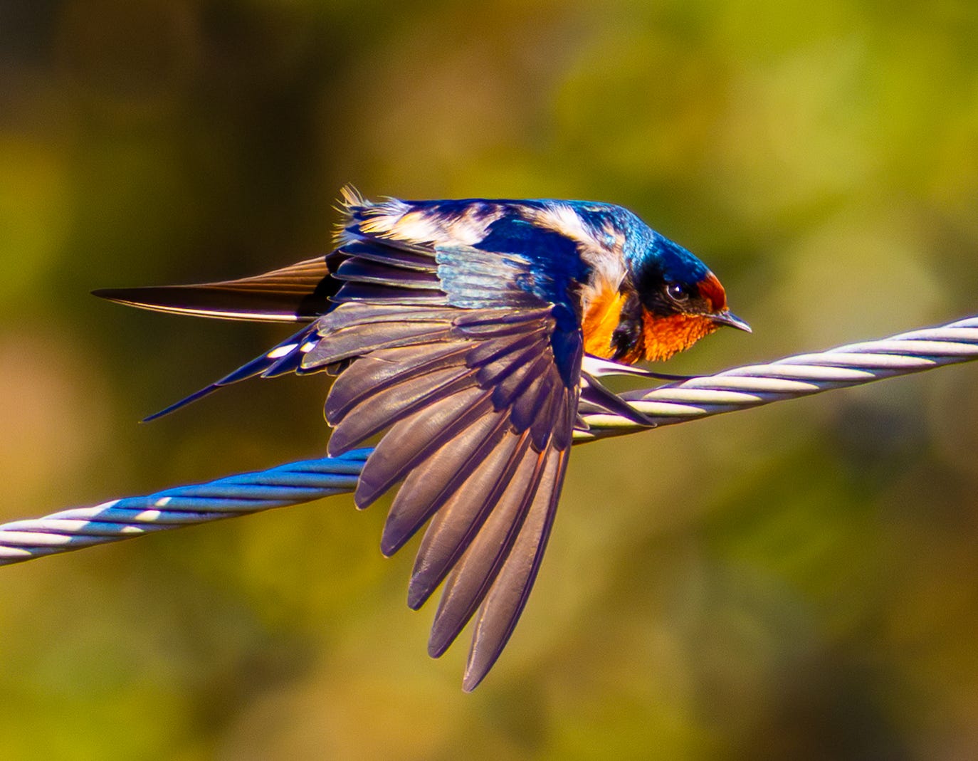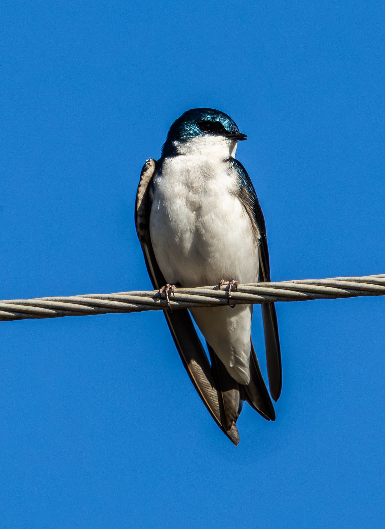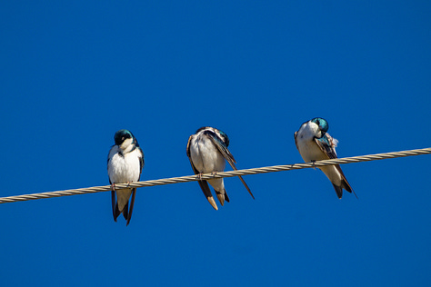 I’ll just explain the setup. The way Commerce Reservoir lays out, the wind was blowing hard across the lake to the dam. As happens in spring, large midges were hatching out of the lake. The winds had forced a mixed flock of several hundred swallows down, and they congregated at the dam where the high winds were pushing all those midges. The swallows used the power lines over the dam as roosting and resting spots, and the wind funneled midges up and over the dam into the mouths of the swarming birds. This led to my sighting a couple lifers including the rare cliff swallow.